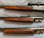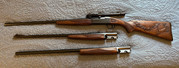 In 1985 my father acquired a unique Savage Model 219/220 that included a lower receiver with a walnut butt stock and 3 interchangeable barrels chambered in 22 Hornet, 30-30 Winchester, and 20 gauge. Each of the forearms is checkered and the butt stock is ornately carved. The set came in a custom wooden case. The previous owner told him that he bought the gun from a manufacturer’s sales representative in the early 1950s.